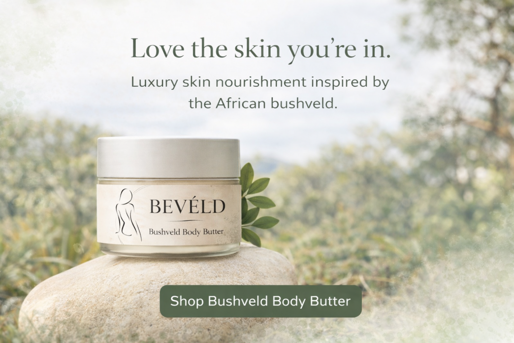Our Bushveld Body Butter is a rich, velvety blend designed to moisturise, protect, and restore your skin’s natural glow.